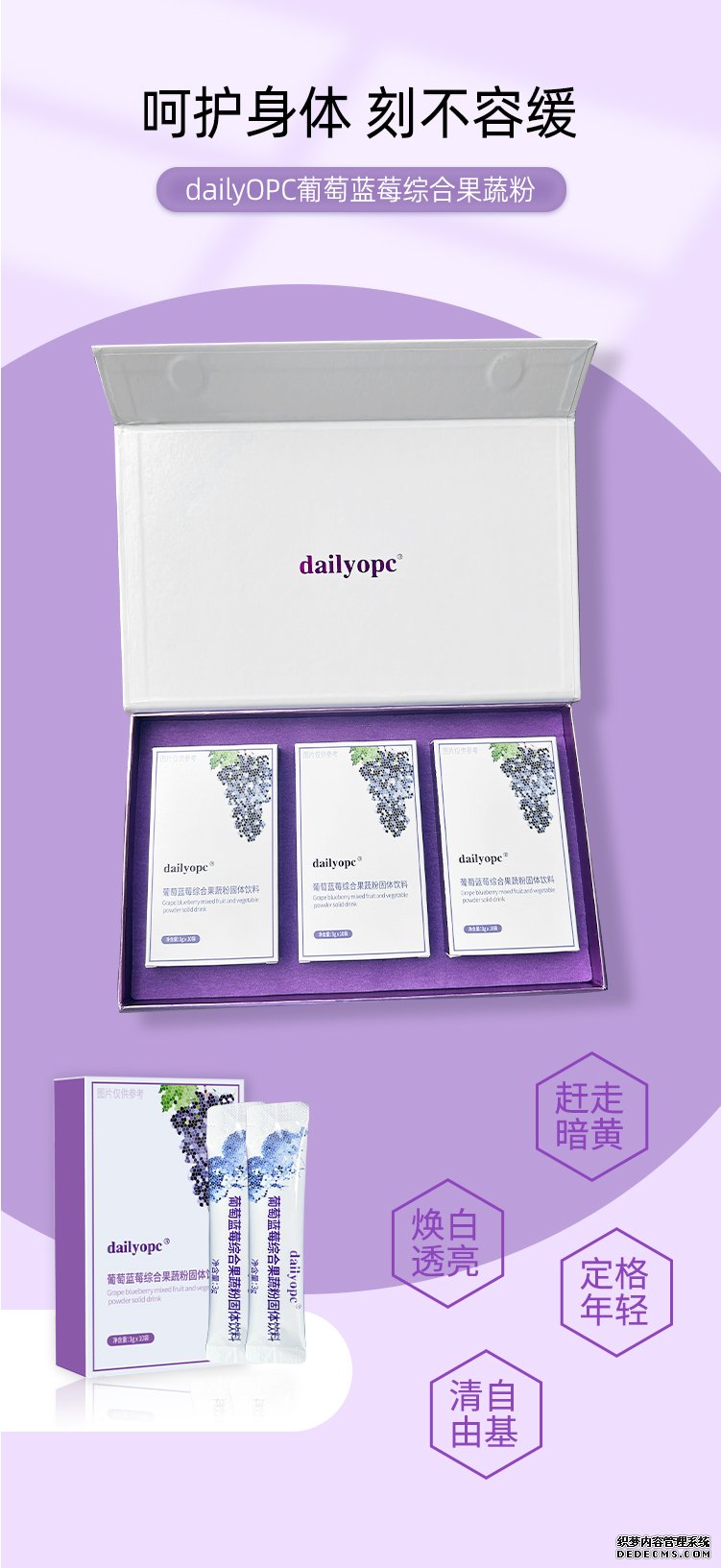 產(chǎn)品簡介:dailyOPC葡萄藍莓綜合果蔬粉的主要原料:葡萄籽提取物,藍莓提取物。其中含有豐富的氨基酸、維生素以及多種礦物質(zhì)等營養(yǎng)成分,葡萄籽提取物可有效清除體內(nèi)多余自 由基,具有抗氧化、美容護膚、緩解過敏等功效。藍莓籽具有抗氧化、促進新陳代謝等功效。藍莓籽的營養(yǎng)價值非常廣泛,其中含有氨基酸、維生素、鈣離子、礦物質(zhì)以及黃酮類等多種營養(yǎng)元素。